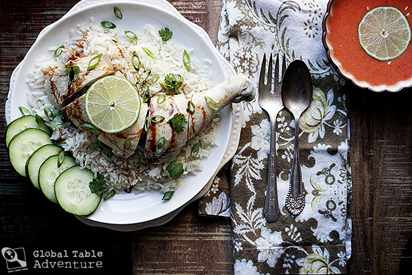 The minute Anthony Bourdain said he got boo’d in Singapore over Chicken Rice, I knew the recipe had edged out all other contenders for a place on our Singaporean Global Table. It’s true – when the world-renowned food star admitted that, after 7 visits, not only did he not have a favorite Chicken Rice joint, but that he’d never even taken a bite of this national favorite, the apparent transgression was enough to send the crowd in an uproar. I can’t even imagine. Talk about food love. Unexpected and pure. Food for Thought: All this hoopla made me wonder what about my culture’s food is this way – what dish must a visitor try to have truly experienced American culture? Pizza? Chowder? I have to say, I was stumped. I’d love to hear your thoughts, if anything comes to mind. For, now, back to business… let’s talk Chicken Rice. This is a deceptively simple dish – one that could be summed up as room temperature chicken over rice. But that summary would do the dish a great disservice. There’s …