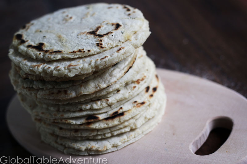 Makes 16 small or 8 medium tortillas This week’s Guatemalan Global Table starts off with a popular treat – the corn tortilla. Store-bought corn tortillas can be so … stale, dry and yucky. But, take five minutes to throw together a simple dough and you can smoosh out the best corn tortillas in the world – certainly as good as any you can find in Guatemala. Make them thick or thin, big or small – any way you shape them you’ll be glad you did. And if you have kids, watch out. You just might need to double the recipe (but don’t worry, they’ll be doing most of the work). Ingredients: 2 cups masa harina 1 1/4 cups water 1/4 tsp salt one giant helping of super secret ingredient (see below) Method: My recipe is not too different from the back of the masa harina bag. There’s one major difference though. I add… … and I think you’ll notice a real difference. With that being said, combine a healthy portion of love with masa harina, …