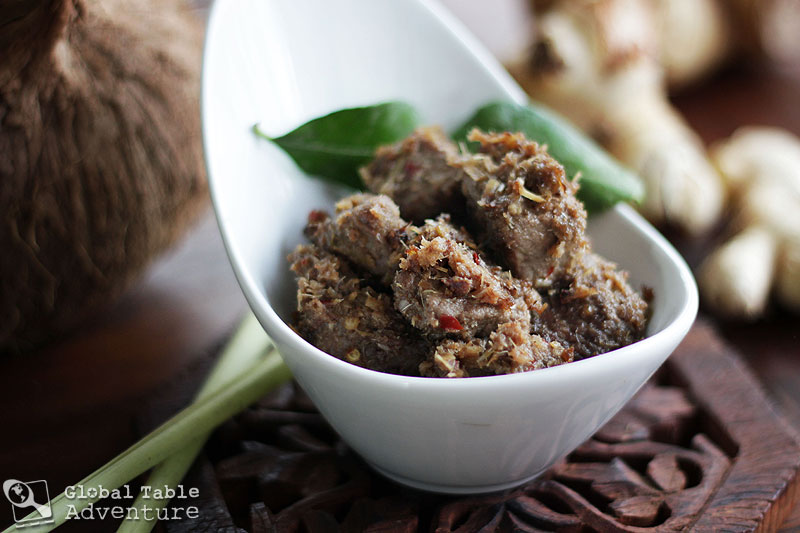 Beef Rendang is an art. And I could eat it every single day of my life. While there are many ways to make this flavorful curry, there are two things for certain – the dish must be slow-cooked until the flavor absorbs completely into the meat, and – secondly – the curry must explode with flavor. In a good way. The flavor part is the easiest. In fact, there are so many amazing ingredients – galangal, ginger, lemongrass, kaffir lime leaves to name a few – that you can’t help but make an amazing curry just by throwing them in a pot together. As for the slow cooking? Follow those famous words of wisdom and just  “Let it be.” NOTE: If you would like your hot pepper to grind smooth, simply soak it in hot water for half an hour. I like the little hot bits, so I processed it dry. Recipe inspired by the cuisine of Chef Norman Musa. Serves 2-3 Ingredients: For the stirfry paste: 3 stalks lemongrass, chopped 2 inches of thumb-thick …