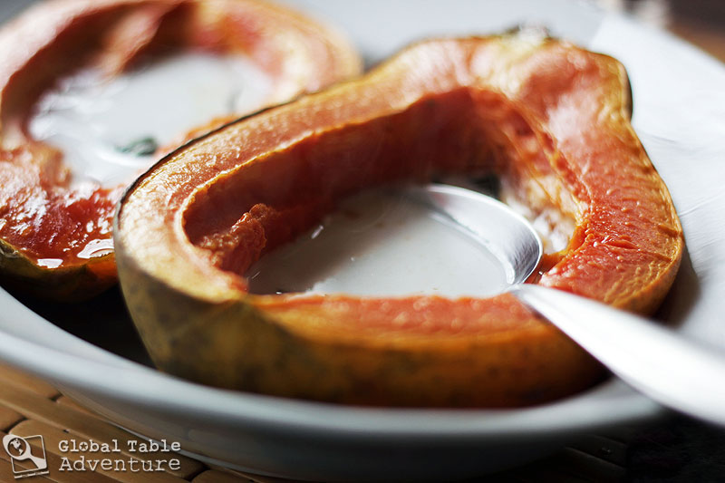 When Ava says it, Keith comes running. “Pa pa pa pa yapa” Even for me, papaya is fun to say. Beautiful to behold. But here the thing. I never, ever buy this tropical fruit because I cannot figure out what on earth to do with it, aside from enjoying fresh, cool slices. Preferably poolside. Enter our week at the Marshallese Global Table, where I learned that these easy, breezy, island people bake papaya with a bit of sugar and enjoy with warm coconut milk. Hello. Okay. Let’s just say I’m intrigued. Once baked, the hot, creamy treat reminds me of peach pie, but without the crust. And without all the work. For more exotic flair, I decided to add the Pacific’s ever-popular pandan leaf, which is available frozen in Asian markets. Pandan adds a vanilla/rice floral note… (Use pandan like bay leaf – use it to infuse flavor, and then remove before eating). Ingredients 1 ripe Papaya, cut in half lengthwise and seeded coconut milk, as needed (about 1/4 cup per side) 4 Tbsp sugar, …