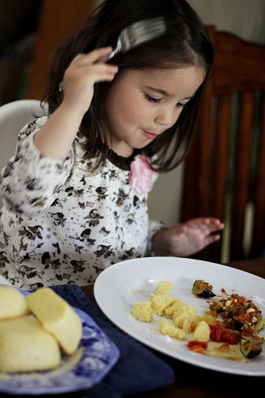 I’ve done it standing in front of my refrigerator at midnight. I’ve done it at 8:30 in the morning, right after eating a complete breakfast. I’ve even done it in celebration of eating all my veggies. I fill my belly with bowlfuls of carbs – pasta, bread, potatoes, or rice – it really doesn’t matter. Simply put: I’m carb crazy. Enter Mamaliga, Moldova’s favorite side dish (and Romania’s, too). Carb-tastic. This thick, dense polenta is made with corn meal (the coarser the better), water, and a bit of butter to make it slip-slide out of the bowl you set it in. Traditionally Mamaliga is sliced into slabs with a string or fishing line. Traditionally, you’d serve it with sour cream and cheese, and it is much appreciated on the side of nearly any dish, especially the locally adored sour soups (like borscht [recipe]). So, friends, join me on the fast train to Moldova with Mamaliga. I’ll save you a seat. Serves 3-4 Ingredients: 3 cups of water 1 cup of yellow cornmeal (medium or coarse grind, …
