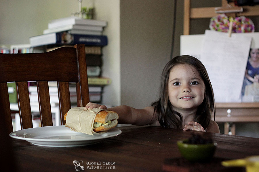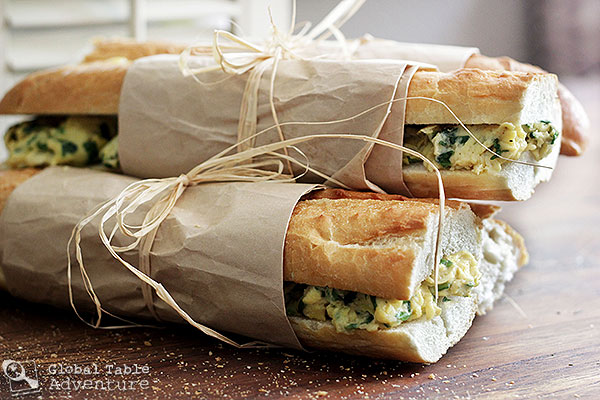 If you’re going to serve an egg sandwich, you best do it up right. Layer hot, scrambled eggs in a crusty, toasty baguette and wrap ’em up. Make sure there’s something green in there to keep you strong and healthy. Tie it with a bow. Simply put: turn breakfast into a present for your belly. I learned this trick from Niger. When I dug around for traditional recipes I kept stumbling upon the same thing: eggs sandwiches sold by street vendors. Simple. Comforting. Filling. This is the kind of thing people crave once they leave Niger – a fond memory in the making. Most people say they come wrapped in old newspapers, but any old paper does the trick. Turns out wrapping up a sandwich is by far the best thing you can do to help keep your eggs from running away. Particularly if you’re 3 years old. Just ask Ava. Seriously. This could have been bad. While I used spinach and a little green onion in our sandwich, the fine folks of Niger often …