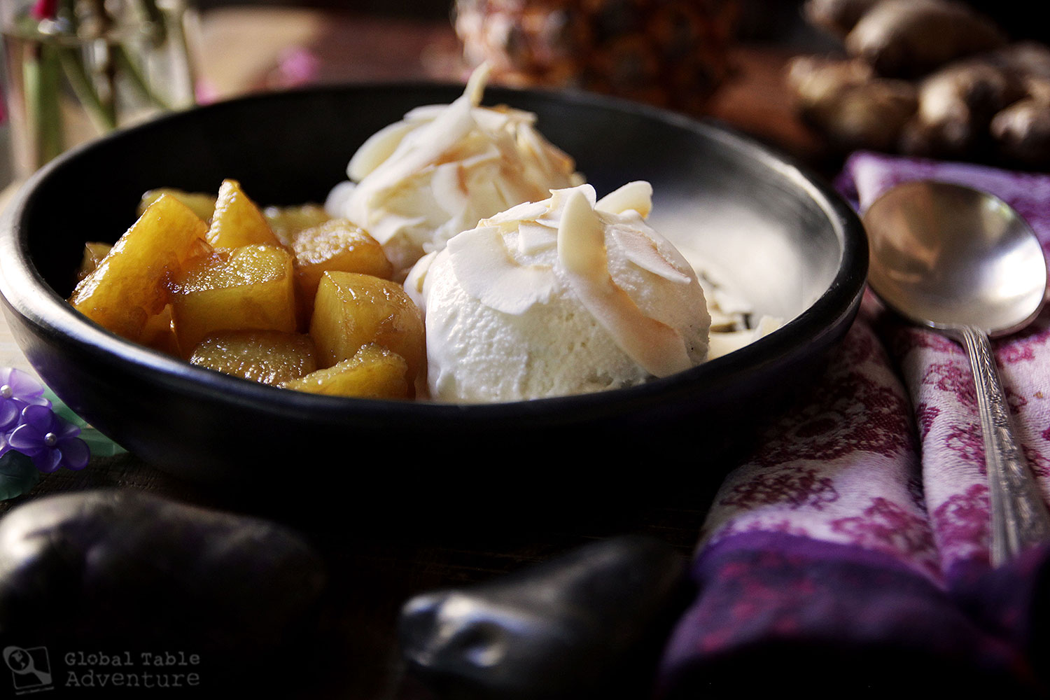 Gingered Pineapple Ice Cream Sundae with Toasted Coconut