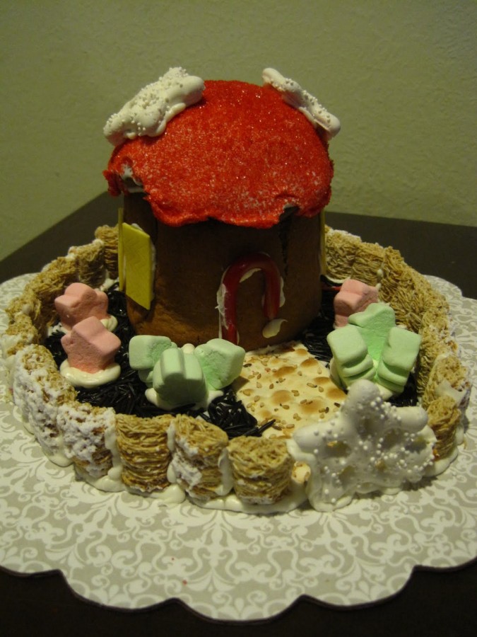 Inspiration: When I originally looked for inspiration for this project my plan was to find a Polish cottage and replicate it as a fun way to learn more about my heritage. However, when I found the Upside Down house by Daniel Czapiewski I was won over by the message of the house/ artistic exhibit in Szymbark, Poland. The Upside Down House was designed to be a reminder of the need to pay attention as the world changes around you because if you don't one day you'll find your world has been turned upside down (as was the result with communism in Szymbark, Poland). I brought this gingerbread house to two Christmas parties in one night, and it got a lot of attention. I enjoyed explaining the inspiration for this gingerbread house to all of my friends. Besides being yummy it was educational and positive.