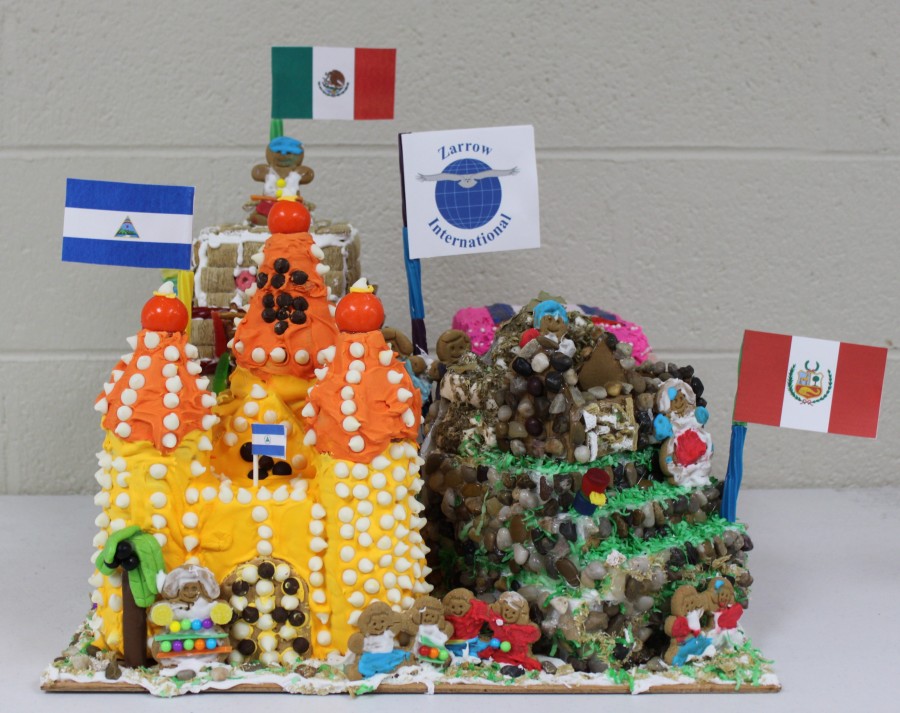 Inspiration: Zarrow International is a bilingual school teaching Spanish and English. We chose 4 different houses from Mexico, Nicaragua, Cuba and Peru because we have teachers at our school that are from all of these countries. These countries have different cultures and although the teachers are different, we all come together as one Hispanic culture. Our Hispanic communities make us a global community because we don’t’ think that everyone in the world has the same culture and they all speak English. It shows that we can stand together, work together and live together. Our gingerbread house promotes world peace because we’re trying to learn about these countries and accept that they’re different, but stand together as one. This helps us form a better community and world, because we can understand another language and understand other cultures. We can make a difference and include peace. We can make friends all over the world. We truly are, “One World Hand-in Hand!”