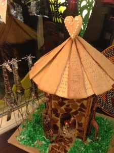 Inspiration: our Store and the Mission is the inspiration, Fair Trade, and the Giraffe, they have the largest heart of Land mammals therefore need a very tall African hut built with gingerbread, brittle with paprika and quinoa and coconut grass. www.GiraffeVashon.com