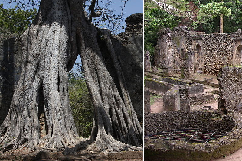 Just for fun, let’s make our chapati in the beautiful Gede ruins of Kenya, a Swahili town that was abandoned in the 15th century. Today, tree roots cover the walls, but once upon a time this was a bustling community with vibrant trade.