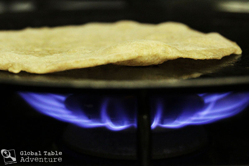 - Form each piece into a ball and then roll out thin and flat, using flour as necessary. Next, heat up a griddle, flat iron pan, comal, or other such pan over medium high (do not use nonstick). I used a comal. Add a little vegetable oil, as needed. Cook chapati on one side until the color changes, it begins to bubble up, and brown spots form underneath. This should take 15-30 seconds.