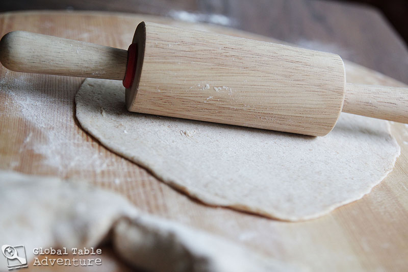 Form each piece into a ball and then roll out thin and flat, using flour as necessary.