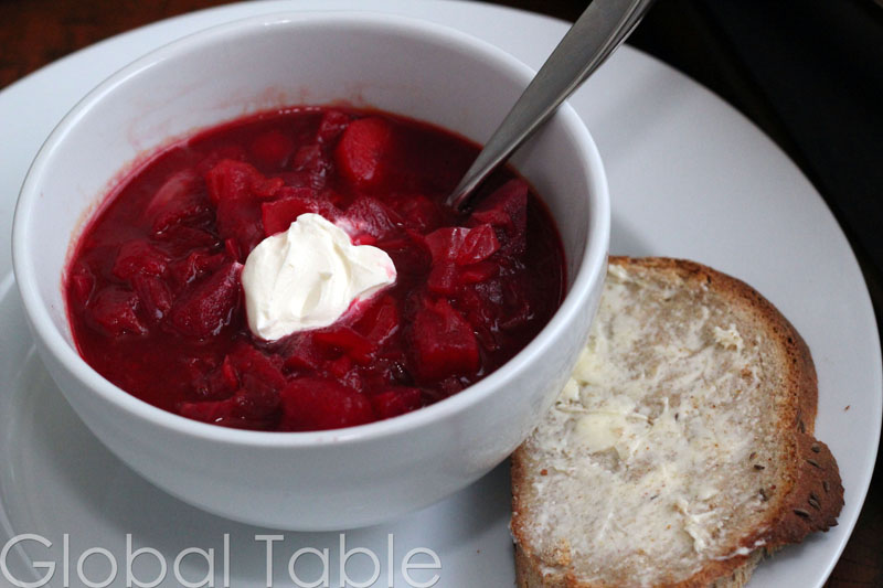 Ava is getting her two top teeth (hurrah), but the poor thing is in a great deal of pain (boo). I’m blaming teething on her poor reaction to the borshch. Right? I mean, what child doesn’t love beets? Ok, maybe I’m delusional. She did enjoy a few crumbs of the rye bread, but she took a while to eat it. The texture really throws her off. I can’t wait to tell her how she didn’t like bread when she was a baby. 🙂