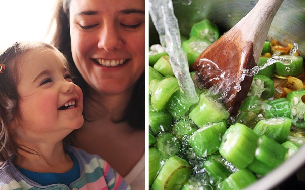 A thick strand of ooze connected my spoon to the serving bowl. I wiped it up quickly, before mounding the spiced okra onto Ava’s plate.