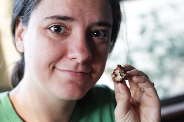 Bone-in chicken marinated in a combination of khemeli-suneli, peanut oil, and lemon juice. The secret? Extra long marination to make the flavors scream. I’m a fan of screaming food (so says the girl who likes a little salad with her vinegar).