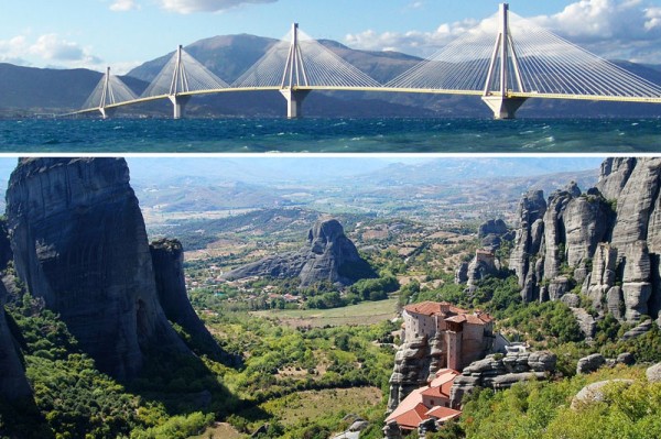 The Rio Antirio bridge; Meteora