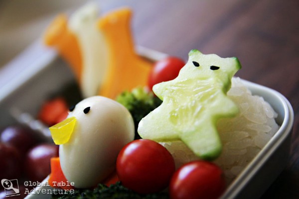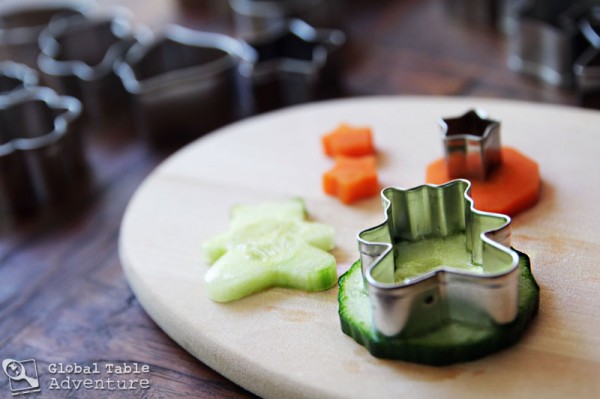 To start out, you don’t need much but a few tiny cookie cutters. You can use them to cut out steamed carrot stars, cucumber bears…
