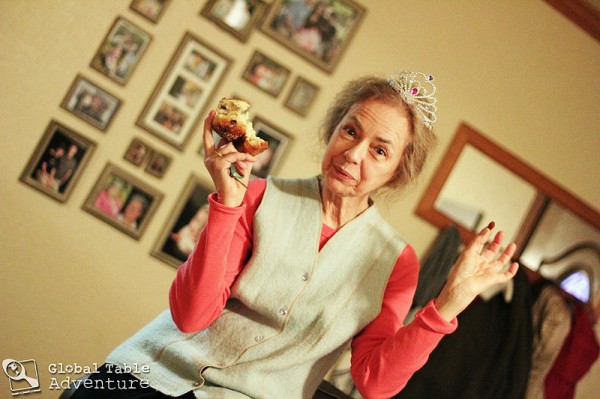 “Ava,” I say, “would you like a piece?” offering her the soft roll which hides the almond. “Who ever finds it will be King or Queen for the day.”