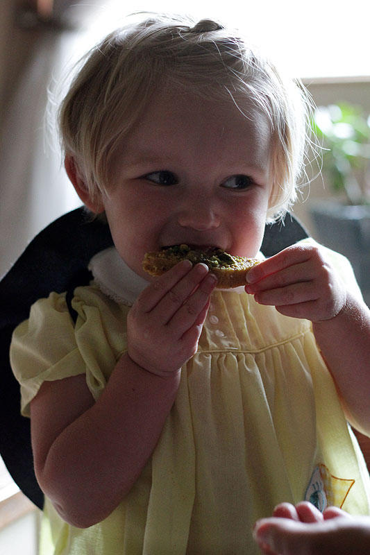Oh, the glories of simply spiced split peas. This is a winner – the entire family, including our guests, enjoyed the dhal. I had my doubts as to whether or not Mr Picky would go for it, but he ate it all up with gusto. The biggest hit, however, was with the children. It’s so nice to see kids loving a completely healthy (and bonus, vegan) meal.