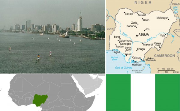 Maps and flag courtesy of CIA World Factbook. Photo of Lagos, Nigeria. Photo by Benji Robertson.