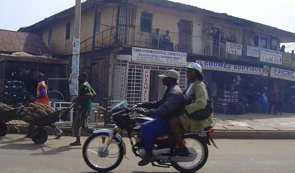 Motorcycle ride in Nigeria (note the yams in the wheelbarrows). Photo by Paul Scott.