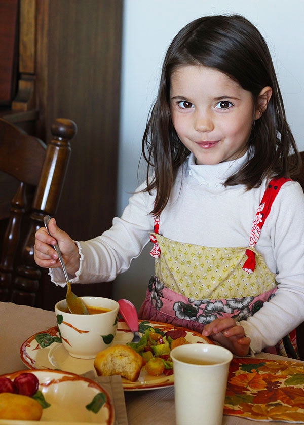 Keith’s mom was able to use some of her family china to set the mood and I brought some rust-orange leaf place mats that my mother gave me. The warm autumn colors went perfectly with the pumpkin and coconut cream soup. Eating our meal off of plates and mats which have cycled through dozens of special meals made me feel connected to the deeper meaning of Thanksgiving… the importance of family. I loved seeing the three siblings come together from miles apart for this meal.