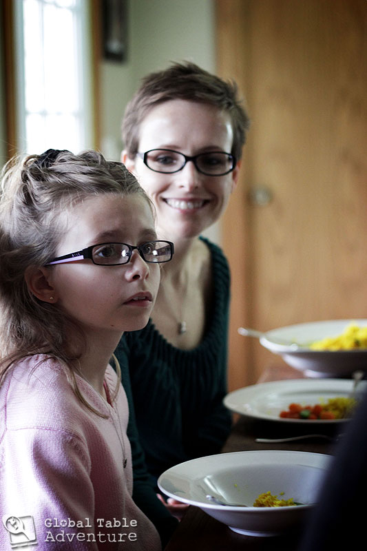 Now for those of you with picky children, take heart. Janine’s daughter, the most Picky of the Picky, thought hard about trying the yellow rice… It’s a heavy decision that must be weighed with the utmost gravity.