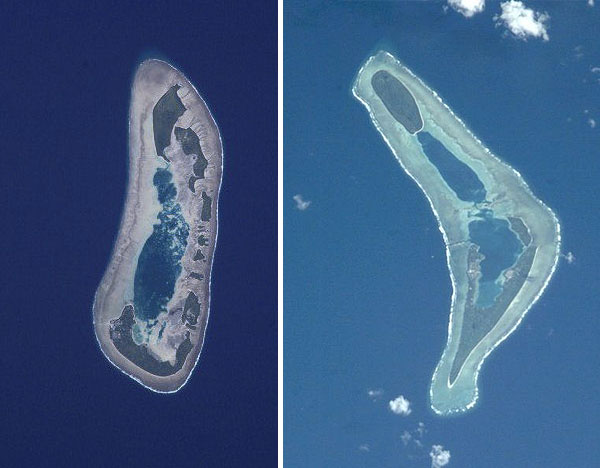 An atoll is a ring-shaped coral reef like these:
