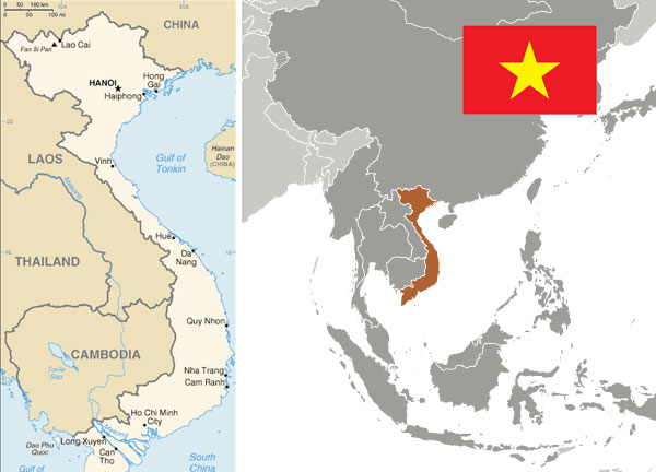 Maps and flag of Vietnam courtesy of the CIA World Factbook.