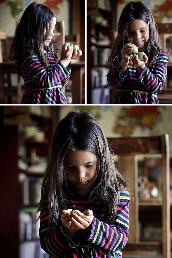In the spirit of getting back to basics – to those real Easter Eggs of my childhood, I considered safe ways I could “hide” eggs for my daughter to find. Since it was 84F last week I knew the back yard was not an option.