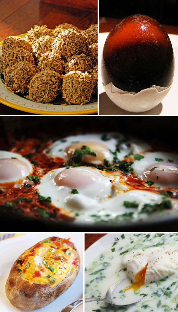 - 5) Century Eggs from Laura at Silk Road Gourmet and peeled photo from Fotoos Van Robin 6) Shakshouka from right here, on Global Table Adventure 7) Idaho Sunrise from Our Best Bites 7) Colombian Poached Egg Soup from right here, on Global Table Adventure.