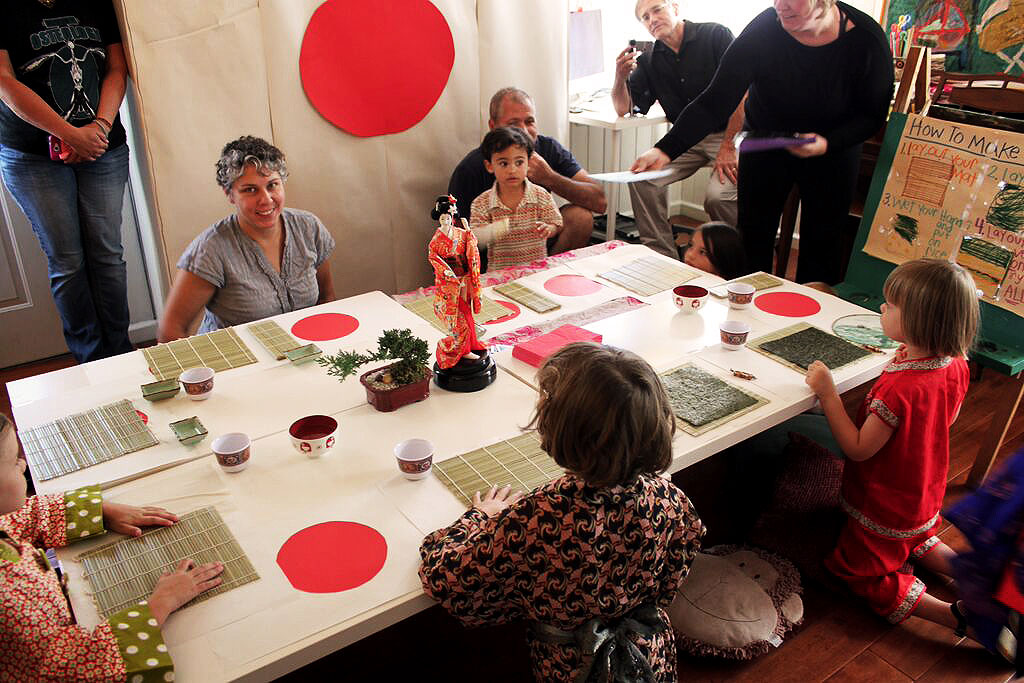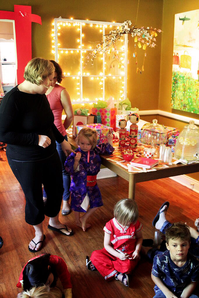 A Japanese birthday party is a fabulous alternative to the standard princess or pirate birthday party. A couple of years ago my good friend and artist Annie Ferris had a Japanese-themed birthday party for her daughter and was kind enough to share the photos. The girls are 4 years old, proving there’s no age limit to having a fun and educational birthday party.