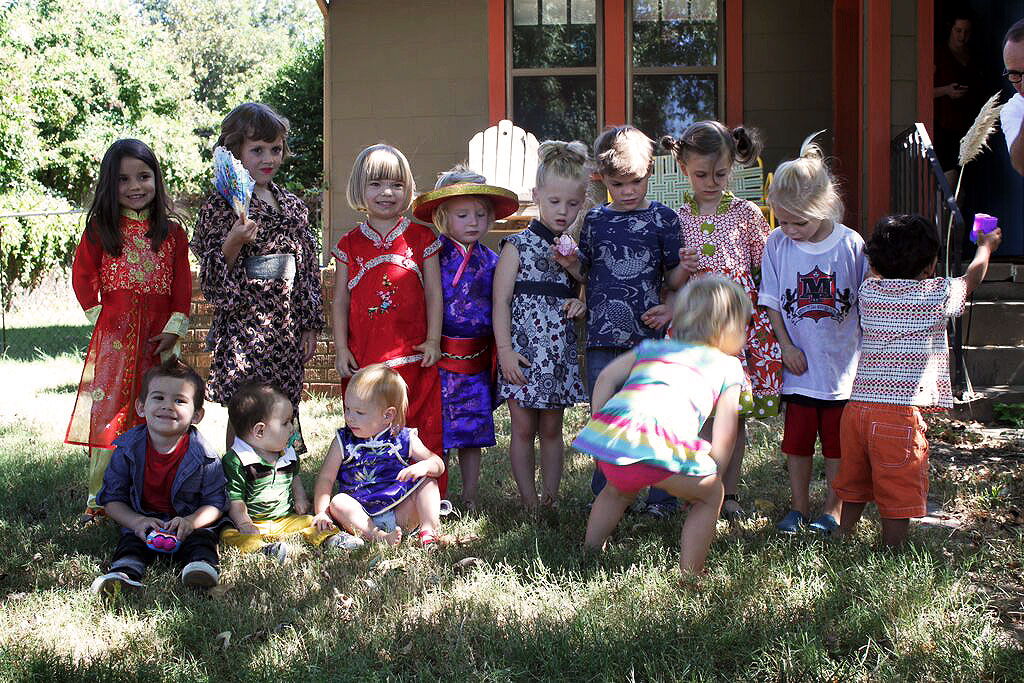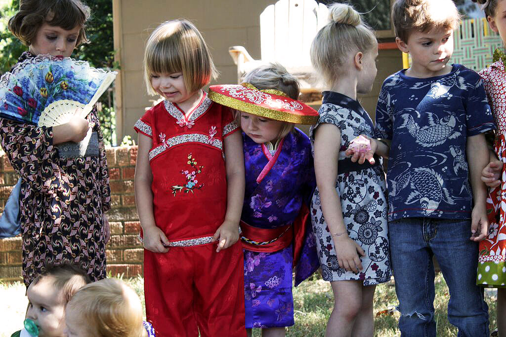 The costumes were a big hit with the children! From the fans to the kimonos, I love them all. The girl in the black and white dress had her hair tied in a bow on top of her head – just amazing… and next to her – I love that boy’s fish t-shirt!