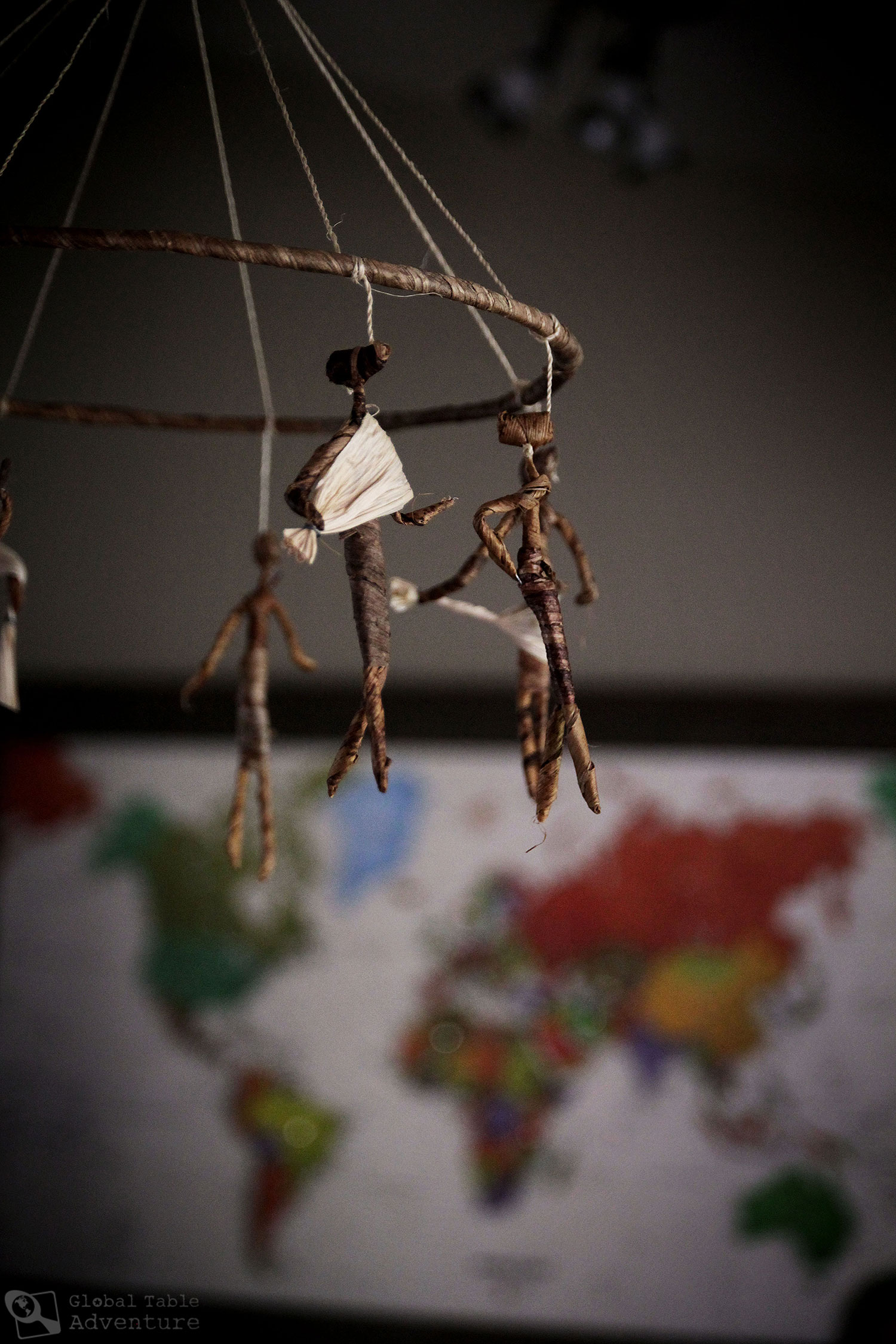 While most might use this sort of art over an infant’s crib as a mobile, when the vendor invoked the notion of using the figures for storytelling I knew that the piece belonged over our dining table. Thus the down to earth mobile became our chandelier – more than a conversation starter, these whimsical figures inspire stories for all ages.