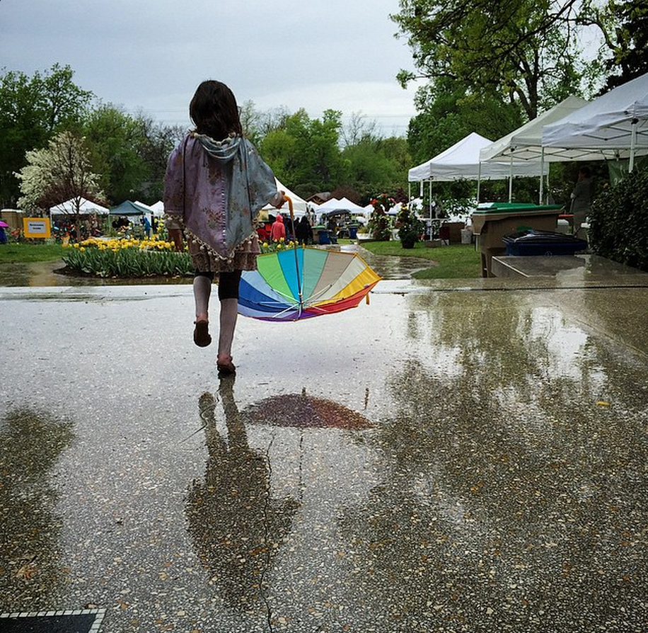 I found our Kenyan storytelling chandelier at a garden festival called Springfest here in Tulsa. My daughter and I almost breezed right past the booth. The rain had just started coming down in earnest: Ava was dancing in puddles with a friend and I was hunkered beneath my umbrella, feeling grumbly about my wet socks.