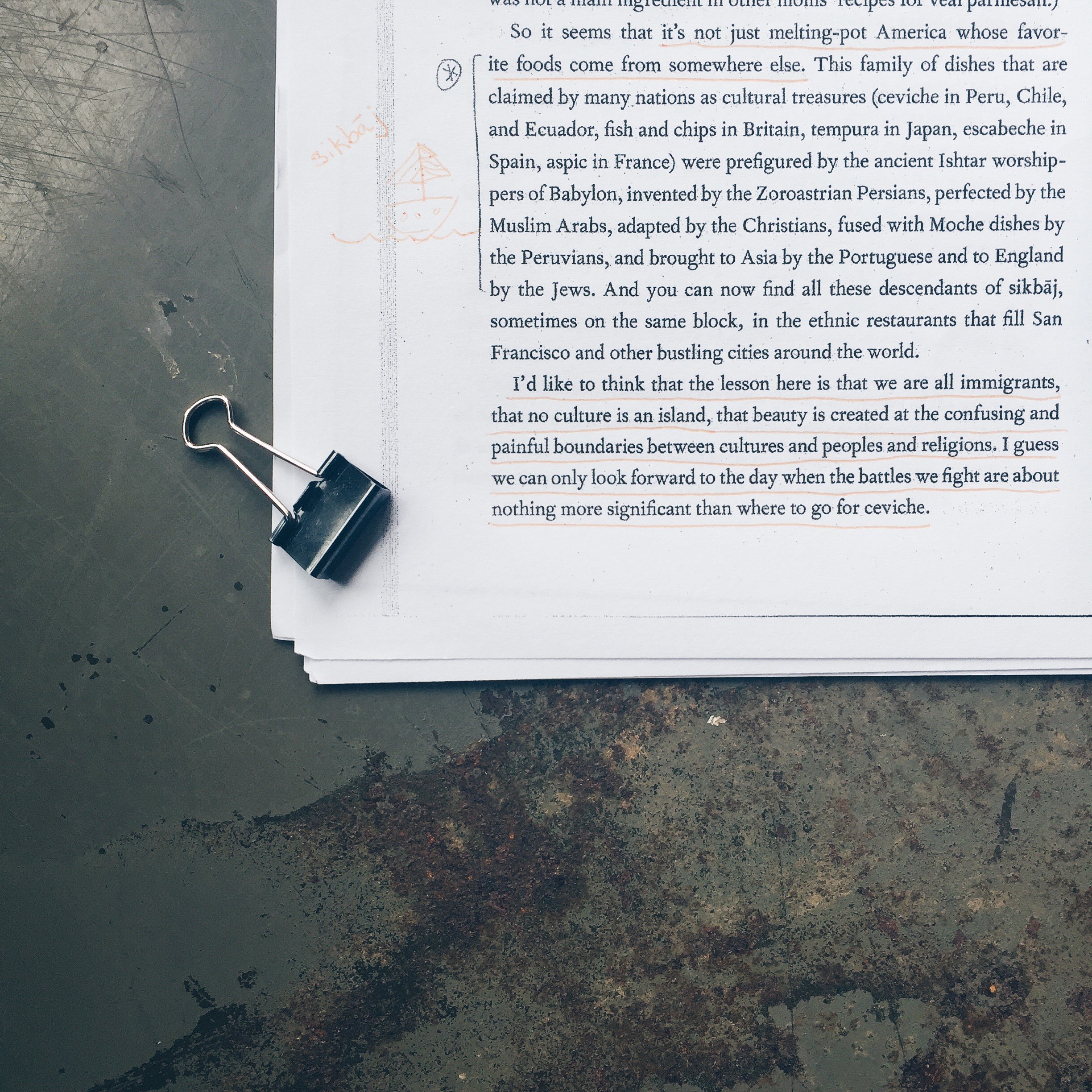 ![Quote from Dan Jurafsky from "The Language of Food" | "So it seems that it's not just melting-pot America whose favorite foods come from somewhere else [...]. I'd like to think that the lesson here is that we're all immigrants, that no culture is an island, that beauty is created at the confusing and painful boundaries between cultures and peoples and religions. I guess we can only look forward to the day when the battles we fight are about nothing more significant than where to go for ceviche."](http://new-body.today/wp-content/uploads/2016/08/food-fellowship2.jpg)