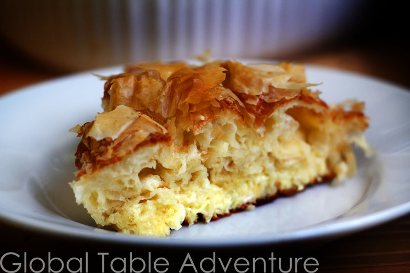 Serves 6 My husband is officially in love with Bulgaria. To be fair, he didn’t stand a chance. Second only to pure sugar, Keith loves anything that includes butter, pastry, or cheese. This recipe boasts all three, and in eye-popping quantities. Not to say it was love at first sight. It wasn’t. After all, my pastry skills are minimal. But, hey, we can all use a little forgiveness in the kitchen, from time to time. Especially when it comes to pastries. Thankfully, phyllo dough spreads, puffs and crackles haphazardly, hiding flaws brilliantly. Bulgarians serve this vegetarian cheese pastry room temperature or cold with plain yogurt on the side. Add spinach for a healthy variation. Note: Bulgarian yogurt, a little runny and decidedly tangy, is available for purchase at health food stores. Ingredients: 6 eggs 1/2 tsp baking soda 3/4 lb sirene cheese (or feta) 1/2-1 stick butter 1/2 package of thawed phyllo dough (about 21 individual sheets) Method: 1. Preheat oven to 350F. Melt some butter. NOTE: You’ll need half a ton of butter, or …