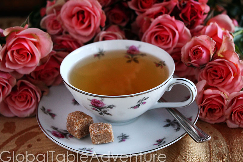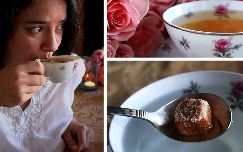 Makes 1 cup Want to drink a rose? White Coffee is the fabulous way to be romantic. Just boil a pot of water and 15 seconds later you’ll be sipping on a hot cup of romance, relaxation and restful enjoyment. Although called white coffee, this popular Middle Eastern drink is really a caffeine-free blend of hot water with floral essences, spices, herbs, or aromatics. Our version is made especially for Valentine’s Day with one of the most popular variations, rose water. Psst, it helps to serve this drink with a bundle of pretty, pink roses. Ingredients: 8 oz hot water 1-2 tsp rose water sugar cubes Method: Get out one of your favorite tea cups. It should be delicate, old, and – even when empty – full of memories. This tea set came from two places. I purchased some of them at an antique mall right after college, in Connecticut (oh, about 9 years ago). The rest once belonged to Keith’s grandmother in Oklahoma. She had the same exact set. Is that fate or what? …