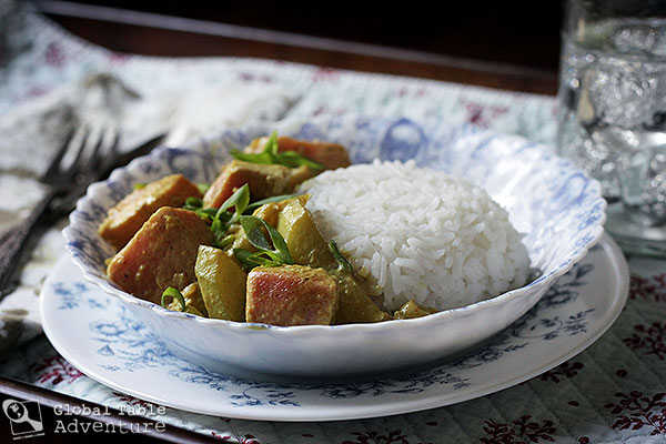 If you ever make it to Tuvalu, you might as well snatch the Tuna straight out of the water, fillet it in the boat, and enjoy the mild fish right then and there. No cooking required. That’s the local way. But for those who are looking for something a little more tame, Tuna Curry is an authentic, delicious option. The recipe is very typical of the Pacific: it includes locally caught fish and coconut milk from harvested from the in the back yard, plus a bunch of imported ingredients. Imports are necessary because very little can grow in Tuvalu. The curry powder exudes Indian influence, which runs rampant in Oceania, as well as soy sauce, a definite nod to Tuvalu’s Asian neighbors. Even things like ginger and garlic are imported. Shipments of goods arrive once a month, weather permitting. This means, if you’re pantry runs dry, and the store runs out, then you’ll just have to wait until the giant vessel anchors offshore. And when it does? All hands on deck… Recipe adapted from Andy Explores. …