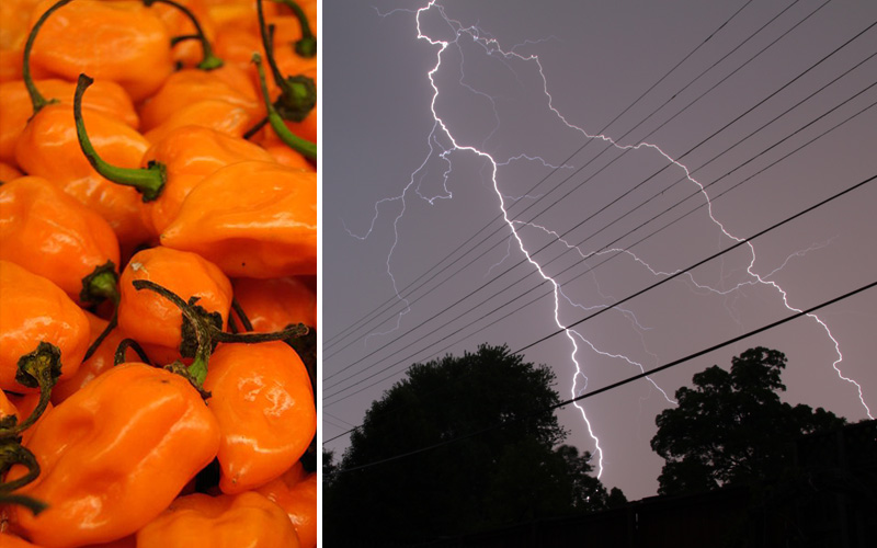 THE SCENE From across the store I could see them – orange habaneros, piled high, glowing like the summer sun. They were small and tender in appearance but, I knew all too well, scary hot on the inside.  Like a crab, I sidestepped across the room, handling several cases of produce before I made my way to the peppers. “Ouch,” I thought, thinking of the meal to come. “This is gonna hurt.” I scooped up three small beauties, reasoning that if they can eat six in Guyana, surely I can stretch myself to try three. By the time I got home, I’d lost my resolve. I’d try one, maybe two habaneros in the Caribbean Green Seasoning. I cut up the celery, onions, garlic, and herbs – tossed them into the blender, and plugged the machine in. No more avoiding it. Time for the peppers. I split a habanero down the middle, taking care to avoid the hot juices, and threw one half in. I didn’t so much look at the second half. So much for bravery. …