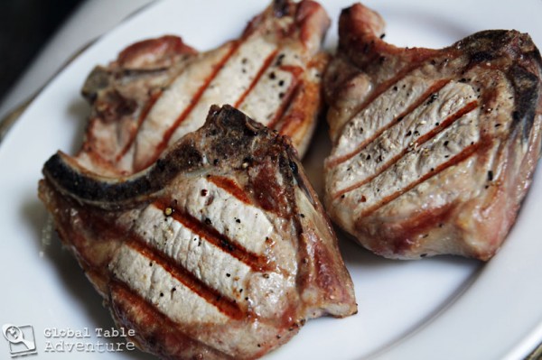 1. Grill up pork chops for dinner. Make three extra for the ravioli filling. Move frozen, chopped spinach to fridge to defrost.