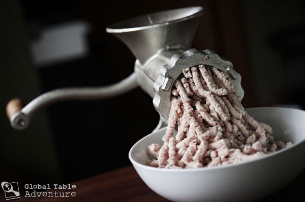 Grill up pork chops for dinner. Make three extra for the ravioli filling. Move frozen, chopped spinach to fridge to defrost. Go to bed and dream about Italy. DAY 2: Debone and grind the pork chops.