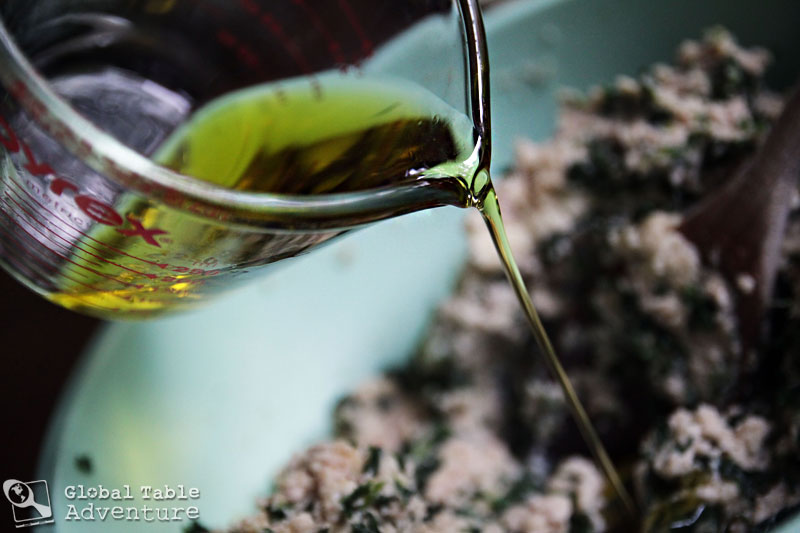 … and olive oil. Adjust consistency with more milk if needed. It should be thick but easily spreadable.