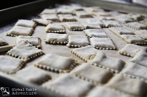 Day three: Roll the dough and make the ravioli. Dry overnight, turning once.