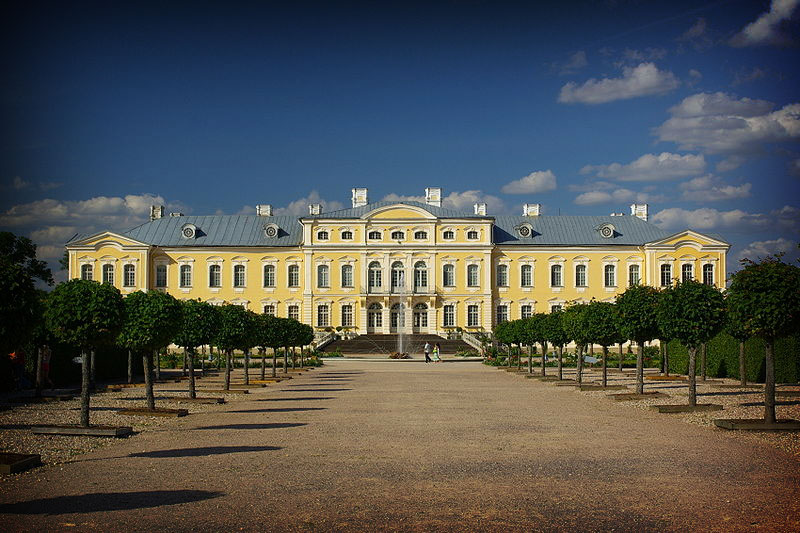 And then, to eat it, dress up in a pretty bowl and spoon the sweet tart goodness all over a thick pork chop, Latvian-style. Eat your meal under a blue, blue sky in front of a butter yellow palace.