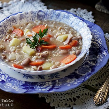 She’s made with barley, a soft, earthy grain that reminds me faintly of pasta, but chewier and more wholesome. When paired with beans, carrots, potatoes, onion, and garlic, an entire meal is made. A slice of rye bread on the side would be grand.