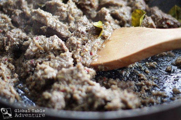 4. Little by little, all the liquid will steam away, leaving a much drier mixture. Add the kerisik and cook another few minutes.