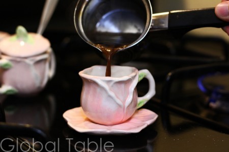 7. Fill your coffee cup with Bosnian coffee. Enjoy immediately, while hot!