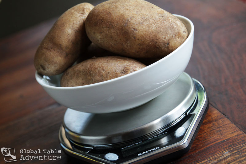 Once you’ve worked up a really, really big appetite, weigh out 2 lbs of potatoes.
