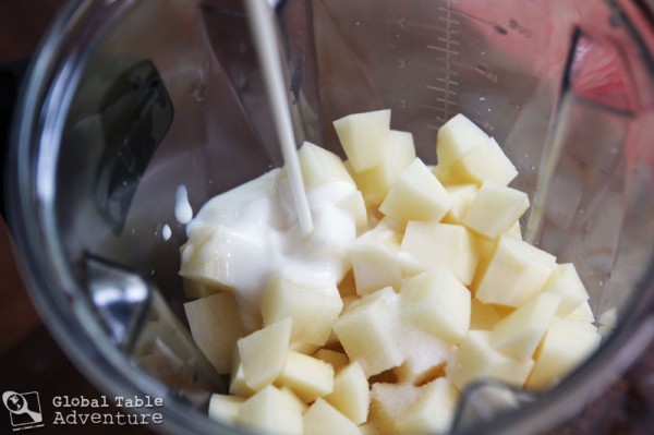 Peel, cube, and toss them in a blender. Pour on the buttermilk and salt. Blend until smooth.