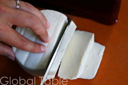 1. Slice guava paste and cheese in thin, even slices (preferably thinner than what I did – I just know you’ll do a better job because you won’t have a teething baby begging you to get a move on).