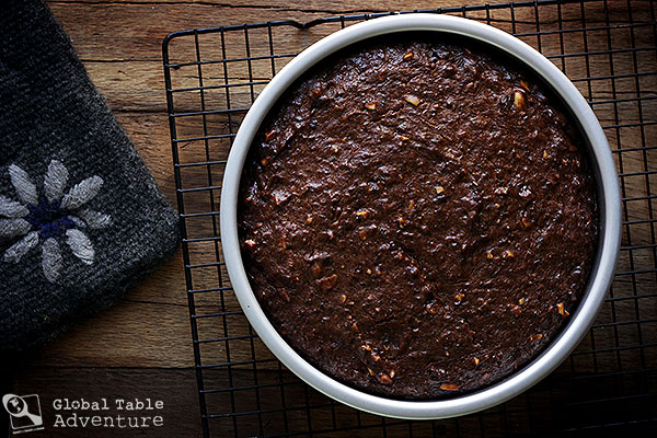 7. The cakes won’t rise much, as you can see (but the house will smell like an autumn orchard). Now… some people like to pour on extra rum at this point (after poking holes in the top), but I don’t so that Ava can eat it.