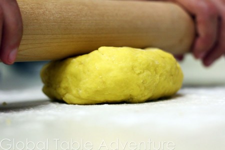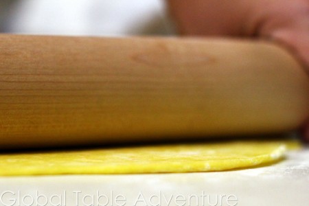 5. Roll the dough out thinly (about 3 mm). Only roll one side of the dough or else it won’t curl when baked.